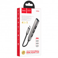Adaptateur Multifonction Hoco HB26 4En1 - Interface : USB Type-C avec 1x USB 3.0, 3x USB 2.0 - Résolution : 4K@30Hz - Puissance : 100W - Vitesse de transmission : USB 3.0 à 5Gbps, USB 2.0 à 480 Mbps - Longueur du câble : 130 mm - Longueur de câble : 130 - Dimensions : 85 x 16.3 x 8.8 mm - Couleur : Gris - Garantie : 3 mois