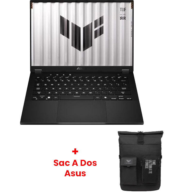 Pc Portable Gamer Asus Tuf Gaming A14 FA401KM - Ecran :14" 2.5K WQXGA (2560 x 1600), IPS, antireflets, 165 Hz, G-Sync - Processeur : AMD Ryzen AI 7 350 (jusqu'à 5.0 GHz, 24 Mo de mémoire cache, 8 cores) - Système d'exploitation : Windows 11 - Mémoire RAM : 32Go LPDDR5X - Disque Dur : 1 To SSD NVMe M.2 - Carte Graphique : NVIDIA GeForce RTX 5060 (8 Go de mémoire dédiée GDDR7) avec WiFi 6E - Bluetooth 5.3 - 1x jack audio 3.5 mm - 1x HDMI 2.1 FRL - 2x USB 3.2 - 1x USB 3.2 Type-C - 1x USB 4 Type-C - 1x lecteur de carte (microSD) (UHS-II) - Clavier chiclet rétroéclairé Touchpad avec touche Copilot - Caméra IR 1080P FHD - Audio par Dolby Atmos Micro AI antibruit - Microphone omnidirectionnel intégré - 2x haut-parleurs 2 W - Couleur : Gris - Garantie : 1 an