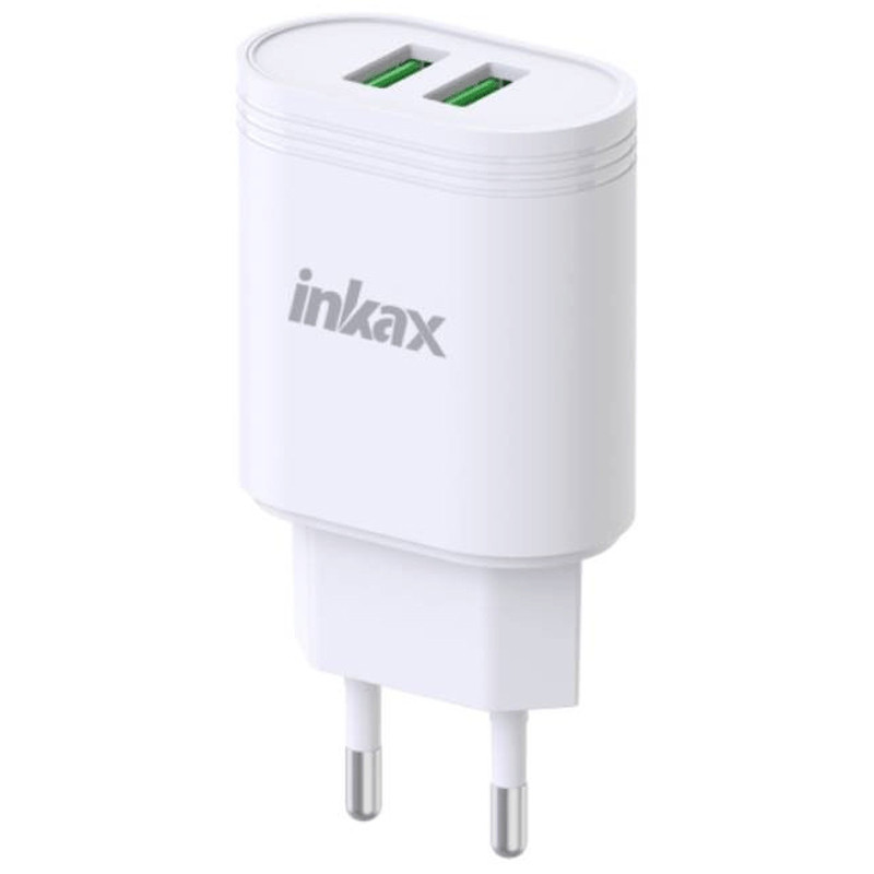 Chargeur Smartphone Inkax Y02 - Nombre de ports : 2 - Ports de sortie de l’adaptateur : USB-A - Puissance : 12 W - Tension d'entrée: CA 100-240 V à 50/60 Hz 0,5 A - Tension de sortie: USB 1: 5 V ⎓ 2,4 A - Fonctionnalités matérielles : Large plage de tension + redressement synchrone + circuit intégré de reconnaissance - Couleur : Blanc - Garantie : 3 mois