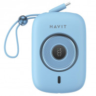 Power Bank Havit PB5214 - Capacité de Batterie : 10 000 mAh - Puissance : 35 W - Nombre de Ports : 1 Port - Interface : Type-C - Charge rapide - Léger et portable - Panneau d'affichage à LED - Câble interne de type C - Câble sert aussi de cordon de transport - Protégé contre les surintensités - Poids : 185 g ± 10 g - Dimensions : 89 x 60 x 27 mm - Couleur : Bleu - Garantie : 1 an